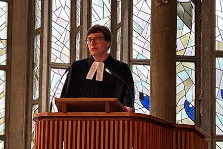 Diakon Matthias Fuchs beleuchtete in seiner Predigt sein Bild von Christsein und Kirche. Bezogen auf den Predigttext aus Matthäus 5,14-16 – „Ihr seid das Licht der Welt. Eine Stadt, die oben auf dem Berg liegt, kann nicht verborgen bleiben …“ – sagte Fuchs, dass wir als Christinnen und Christen gerade in dieser Zeit den „Mut zum Leuchten“ haben sollten. „Wir sollten Farbe bekennen, wo andere nur grau in grau sehen.“ Manchmal sei das schwer, doch dann helfe es sich klar zu machen, dass wir Licht sind. Gottes Licht scheine stark genug, um durch unsere menschliche Risse hindurchzuleuchten. Das Bibelwort der Predigt sei an die eine Gruppe, nicht an ein Individuum gerichtet. „Wir sind als Gemeinschaft“ dafür da, Licht der Welt zu sein. Und wie ein Licht den Raum öffnet, so dürfe auch Kirche „kein exklusiver Zirkel sein“. Kirche haben einen „Auftrag zur Weite“. Der Glaube solle so einladend sein, dass „Menschen durch unser Tun eine Ahnung von der Freundlichkeit und der Liebe Gottes bekommen“. Am Ender seiner Predigt rief Diakon Fuchs dazu auf, „mutig, markant und barmherzig“ sein und als „Kinder des Lichts“ zu leben.