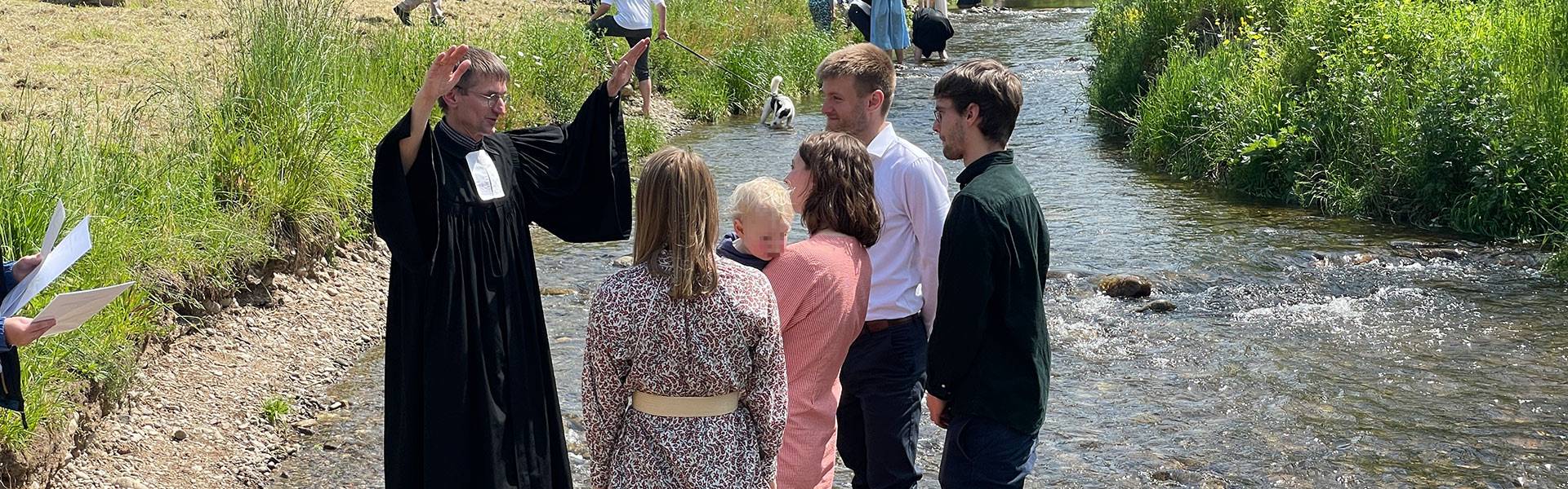 Die Taufe kann an verschiedenen Orten stattfinden: In der Kirche und in einem normalen Gottesdienst, wo andere dabei sind, die auch mitfeiern und mitbeten. Oder in einem Gottesdienst, der nur für Taufkinder und ihre Familien gefeiert wird. Aber es gibt in Freiburg auch Tauffeste an der Dreisam, an einem See oder in einem Park. Da kommen viele zusammen, die getauft werden wollen.